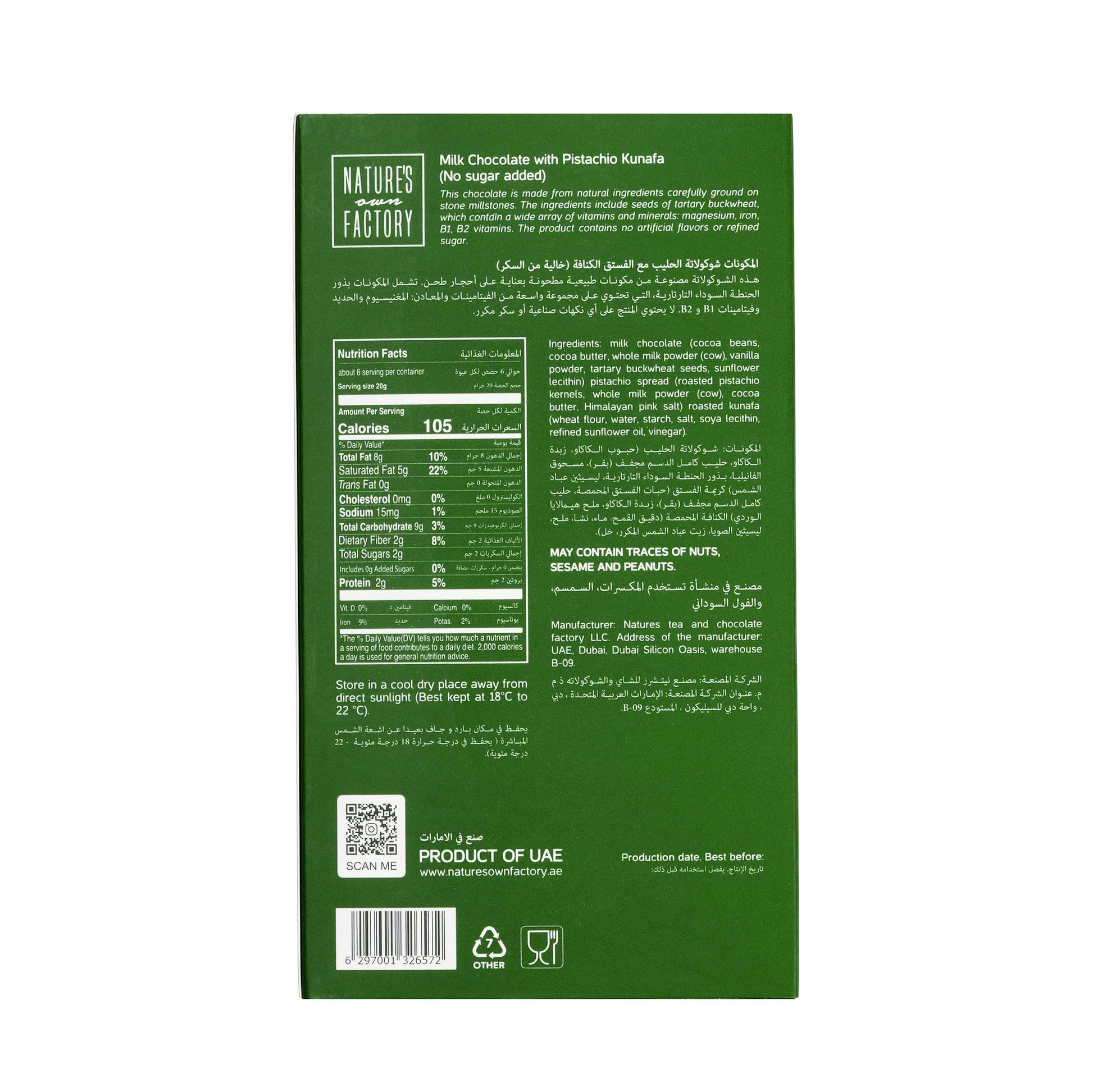 The viral Dubai Chocolate now made cleaner, purer, and better. Locally handcrafted bean-to-bar using single origin cacao beans, rich creamy pure pistachio kunafa filling, and 100 % natural ingredients.